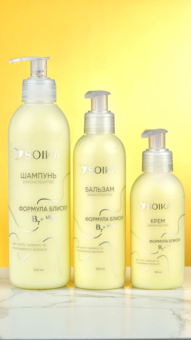 Надайте волоссю інтенсивний догляд і природний блиск з кремом-реконструктором «Формула Блиску» від ТМ Soika. Цей незмивний засіб поєднує легку текстуру з ефективною дією, забезпечуючи зволоження та захист волосся протягом усього дня.