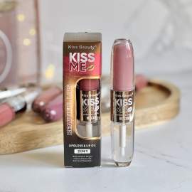 Блиск 2в1 матовий+дзеркальний Kiss Beauty Натуральний блиск надасть губам яскравого, соковитого відтінку і глянсового сяйва, підкреслюючи їхню природну красу. Це продукт 2 в 1 - помада і бальзам, що доглядає, який зробить ваші губи гладкими, зволоженими і спокусливими! Формула блиску містить рослинні компоненти, які дбайливо..